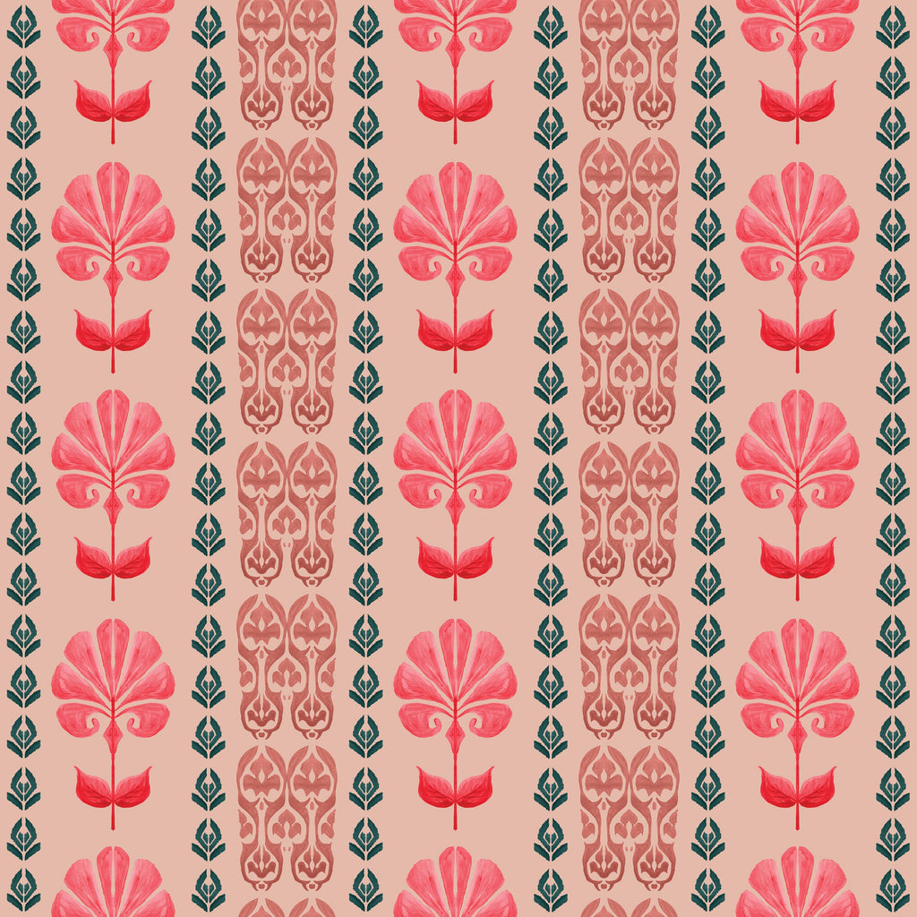 Ikat Flowers Pink Wallpaper | Catchii Netherlands Europe The mix of flowers, colors and composition of this wallpaper will inspire you every day. Celebrate every day as a new beginning!