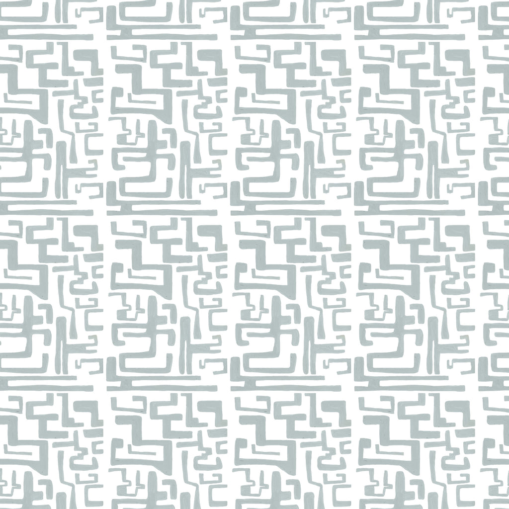 Kuba Blue Grey Wallpaper | Catchii Netherlands Europe This wallpaper is inspired by Kuba cloth. The pattern of Kuba fabric originated in the 17th century in the Kuba Kingdom of Central Africa. Kuba textiles are designed and handmade by the Kuba ethnic group in Congo. Traditionally woven with raffia palm fibers, Kuba textiles with their geometric patterns are known as an important artistic tradition of Congo.