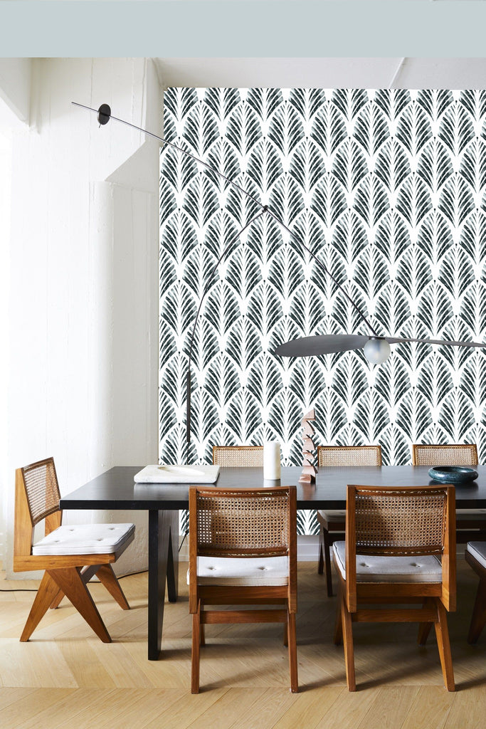 Isabelle Watercolor Leaves Blue Grey Wallpaper | Catchii Netherlands Europe The delicate and simple leaf pattern brings sophistication and a natural feeling indoors. Elegant curves of the leaves are timeless and refined, making this wallpaper design a harmonious image.