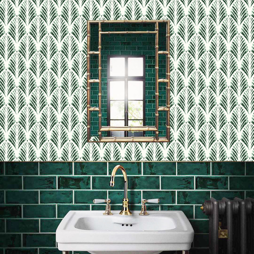 Isabelle Watercolor Leaves Leaf Green Wallpaper | Catchii Netherlands Europe The delicate and simple leaf pattern brings sophistication and a natural feeling indoors. Elegant curves of the leaves are timeless and refined, making this wallpaper design a harmonious image.