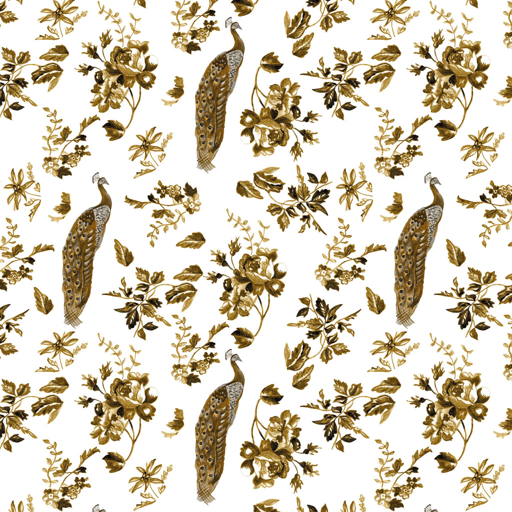 Peacock Rose Garden Ochre Yellow Wallpaper | Catchii Netherlands Europe