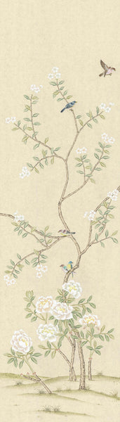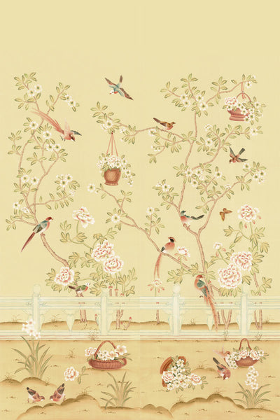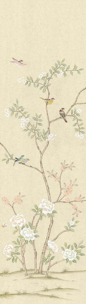 These picturesque Chinoiseries and decorative murals are fine reproductions of the hand-painted originals, gathered from the most talented and exclusive studios of Asia. Scenes on these mural panels include wonderful gardens and natural environments populated with lovely birds, butterflies, and insects. These selections offer a variety of color schemes to meet most interior needs.