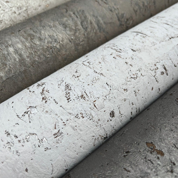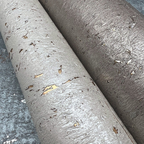 Sustainable, renewable natural Cork becomes a glamorous installation, washed in light-catching pewter and accented by splashes of metallic silver and gold. This Cork Wallpaper measures approximately 36 inches wide by 24 feet long, measuring approximately 72 square feet per roll.