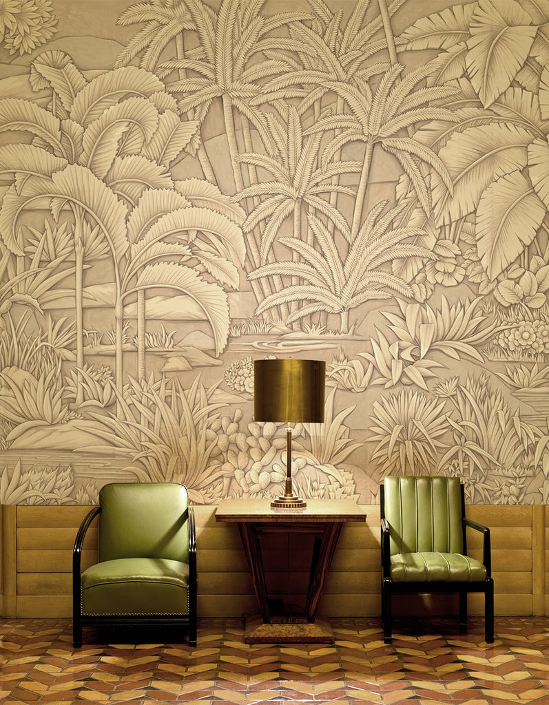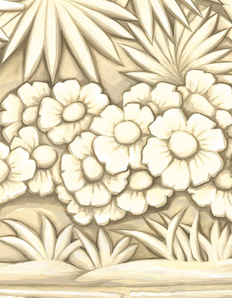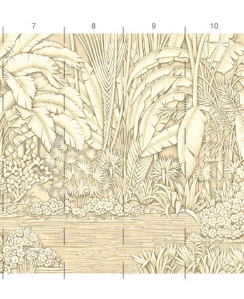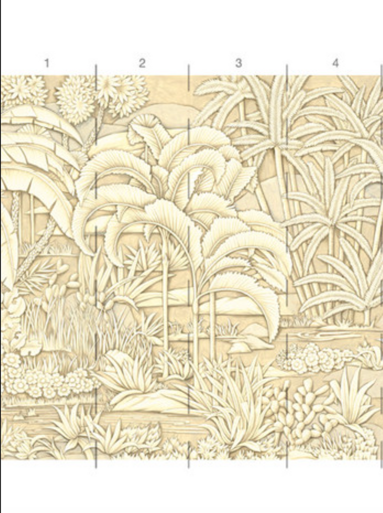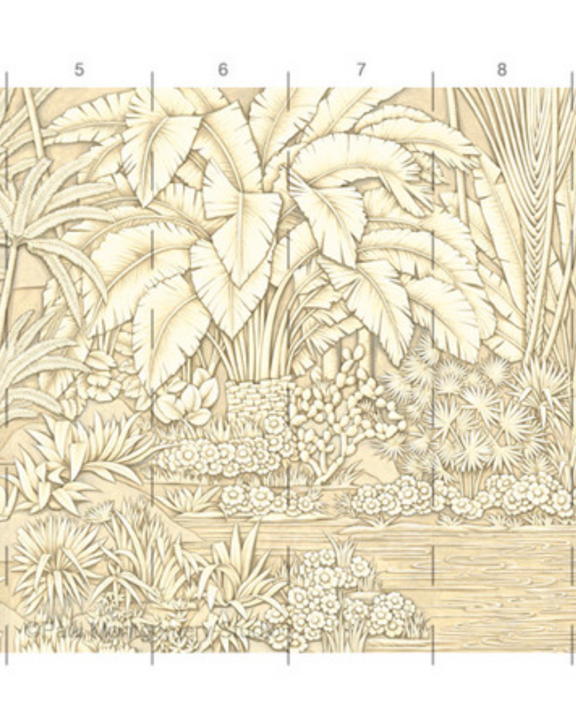Oasis Sepia is a dense landscape of different species of desert palms thoughtfully arranged for your living space. 10 Panels Available in Full Length/Headers/Footers, Sold in individual Panels, Width: 36", Design Height: 144", Total Height: 144", Oasis Sepia,Paul Montgomery Studios