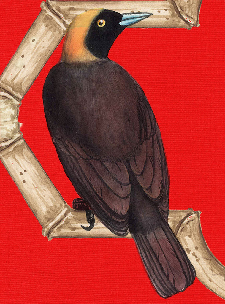 Paradise Trellis combines a modern iteration of a graceful Chinese bamboo pattern with a group of exotic birds of paradise. 4 Panels Available in Full Length/Headers/Footers, Sold in individual Panels, Width: 36", Design Height: 96", Total Height: 96", Paradise Trellis,Paul Montgomery Studios