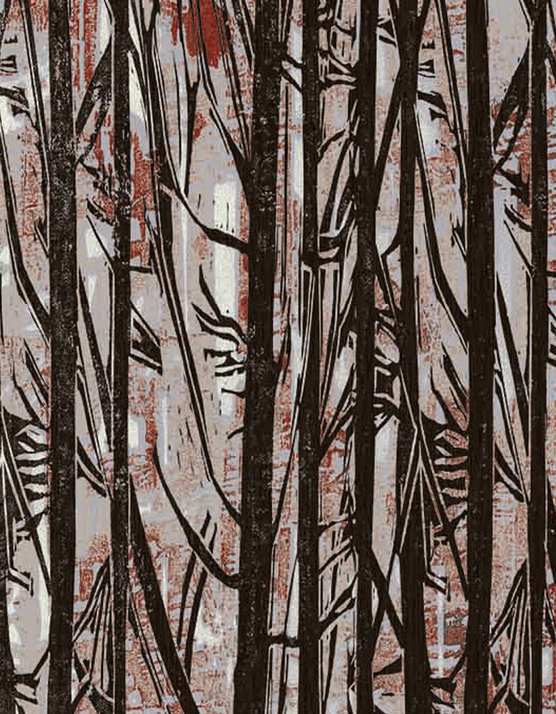 Woodsy was created using traditional woodblock printing. Woodsy evokes a senses of Zen and of being surrounded by the great outdoors. Panels Available in Full Length/Headers/Footers, Sold in individual Panels, Width: , Design Height: , Total Height: , Woodsy,Paul Montgomery Studios