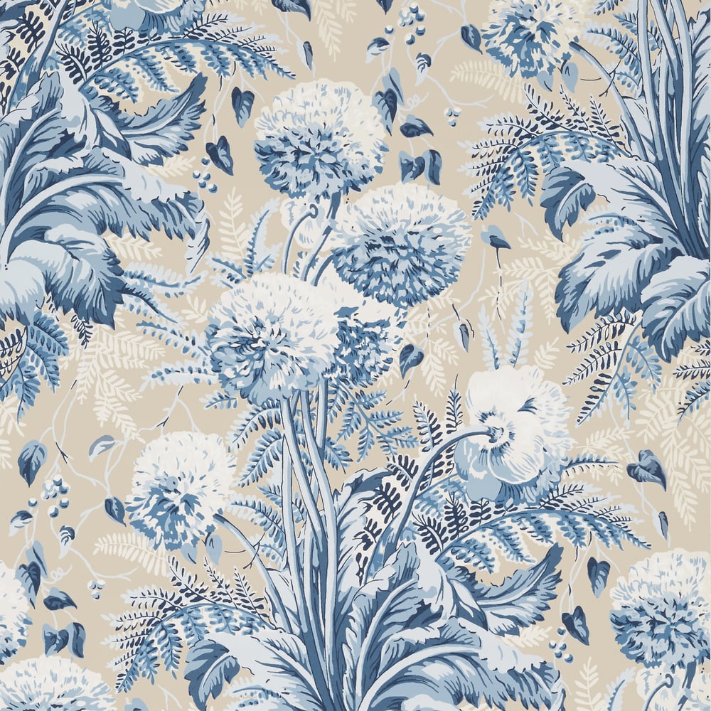 Dahlia Flower Navy, Linen Wallpaper | Thibaut