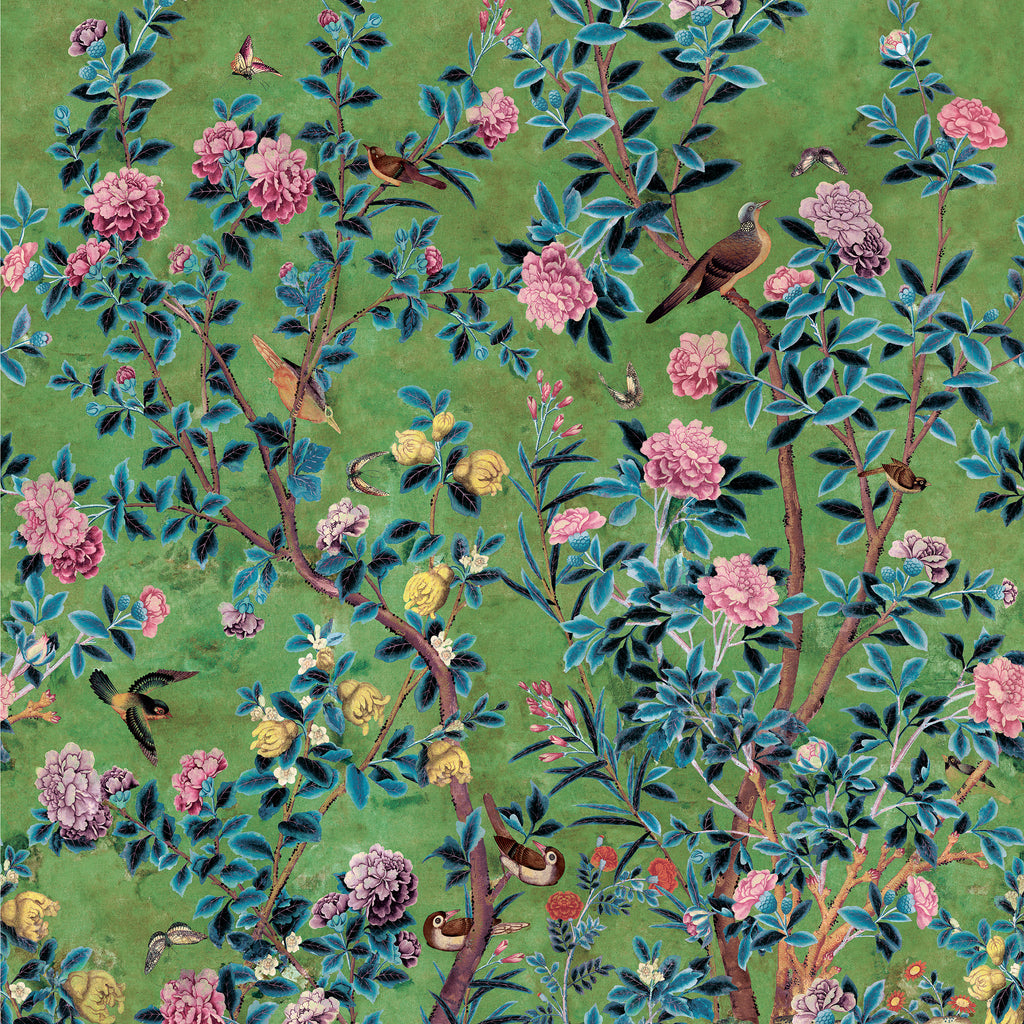 Beige, Coral, Grand Palace, Green, Indigo, Ivory, JARDIN BLOOM MURAL, Maroon, Mural, Olive, Plum, Teal, TM13669, Wallcovering, Wallpaper,KEYWORDS: