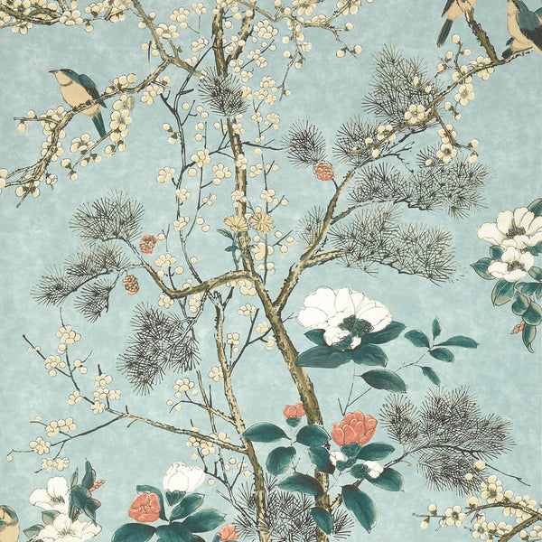 The Grand Palace collection introduces 100 SKUs that evoke a traditional elegance with chinoiserie inspired designs, a style created in Europe from influences of tales and travels to the Far East. These wallpapers with coordinating print, woven, and embroidered fabrics offer a unique juxtaposition of fanciful patterns featuring pagodas and Asian scenics with geometric companions and unexpected colors.