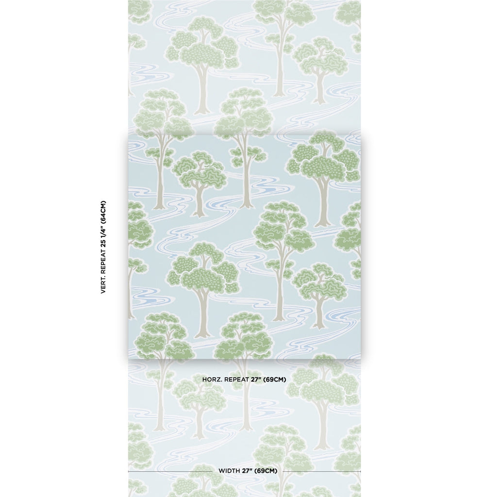 SCHUMACHER, Silver, Teal, TREE RIVER, Wallcovering,