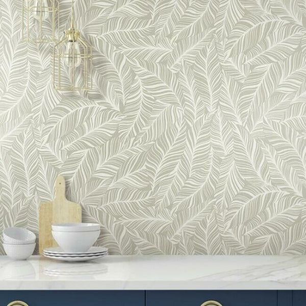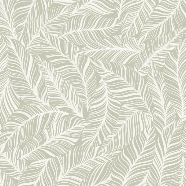 Tightly packed palm leaves feather and curl in allover pattern Rainforest Canopy, creating a modern, zebra stripe feel. This Rainforest Canopy Wallpaper measures approximately 27 inches wide by 27 feet long, covering About 60.