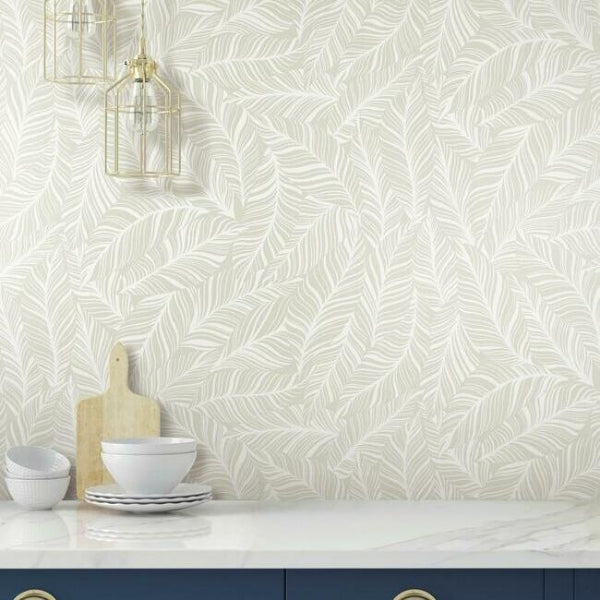 Renate Pearl Rainforest Canopy Botanical Beige Green Wallpaper | Jeffrey Stevens