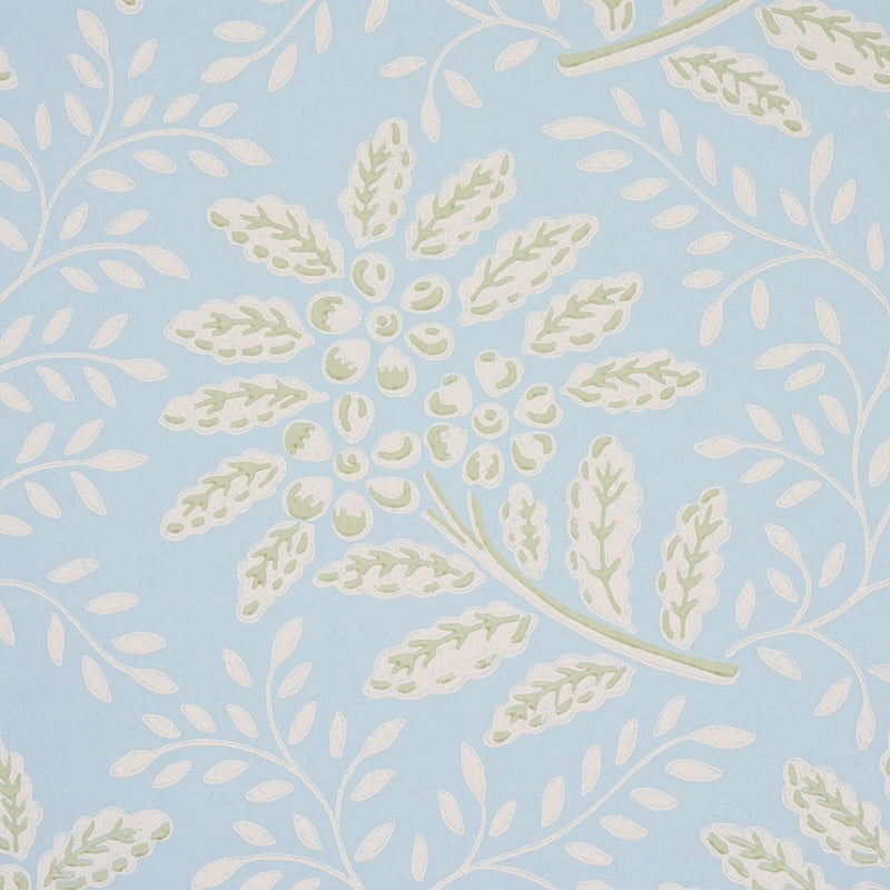 Secret Garden Light Blue Wallpaper by Schumacher features delicate botanical motifs in soft blue tones, creating a serene and elegant ambiance. Perfect for adding a touch of refined nature-inspired charm to any space. #LuxuryDecor #TexturedWalls #ElegantInteriors