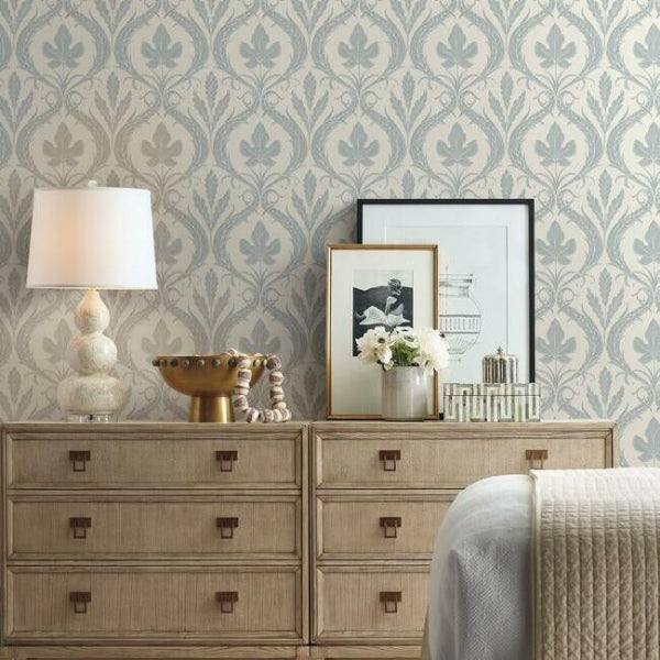 The sugar maple leaf is the lodge-inspired vintage symbol at the heart of modern pattern Adirondack Damask’s ovals and ornate scrolls. This Adirondack Damask Wallpaper measures approximately 20.
