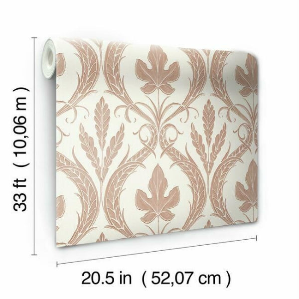 Aceline Adirondack Damask Beige Red Wallpaper | Jeffrey Stevens