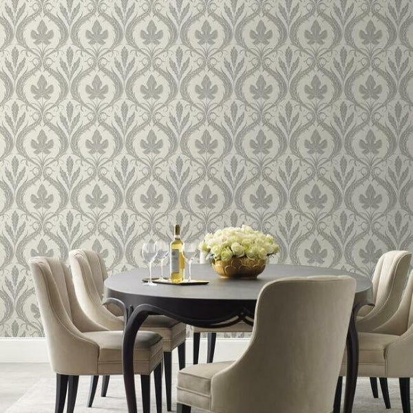 The sugar maple leaf is the lodge-inspired vintage symbol at the heart of modern pattern Adirondack Damask’s ovals and ornate scrolls. This Adirondack Damask Wallpaper measures approximately 20.
