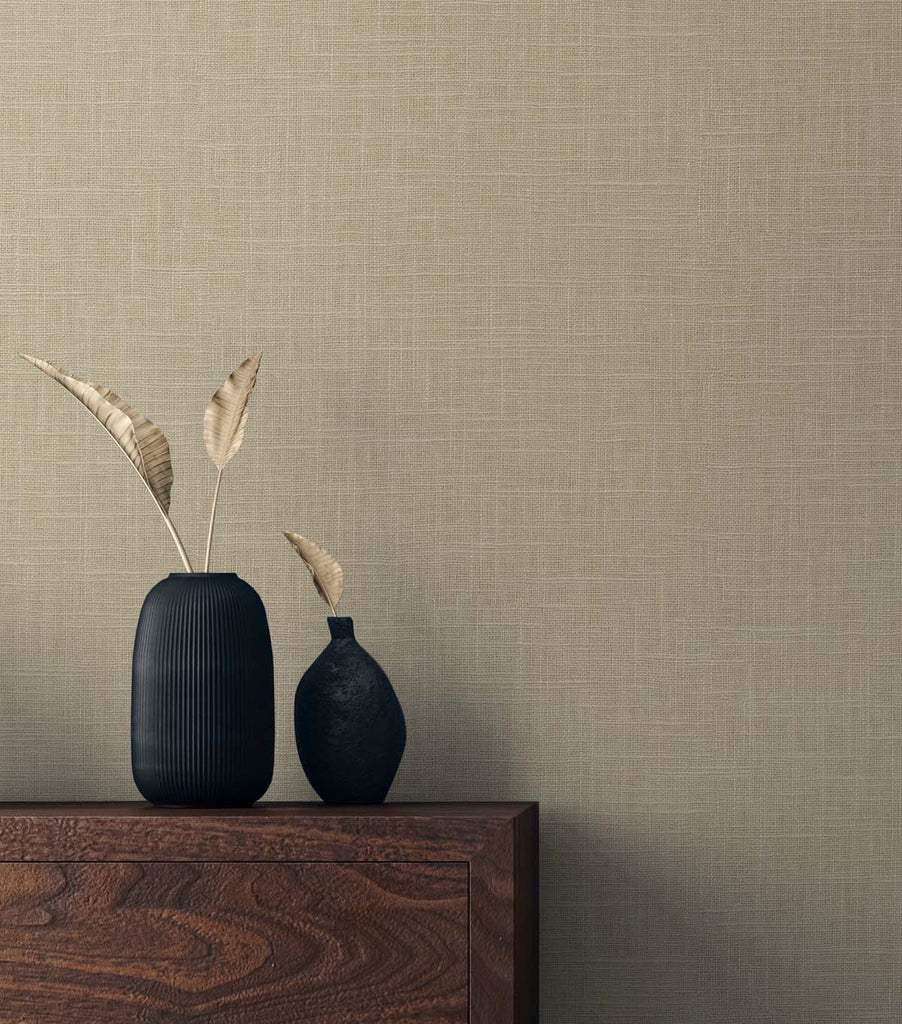 Soft, natural texture meets refined simplicity in Myrna Linen Linen Hemp Beige by Malibu Walls Type 2 Vinyls. A neutral-toned weave look adds warmth and timeless elegance to any interior. #luxuryinteriors #texturedwalls #vinylwallcovering