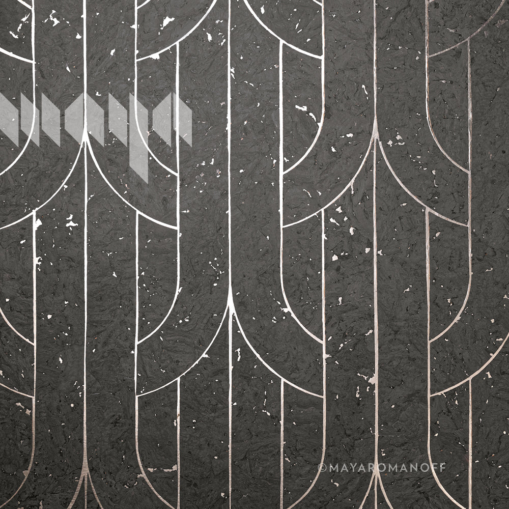 Designed by David Rockwell for Maya Romanoff, Porto Deco™ is sustainably harvested, colored cork that is hand-inlaid on a luminous metallic foil. Inspired by the theatrical draping of fabric, Porto Deco™ is available in 9 rich colorways.