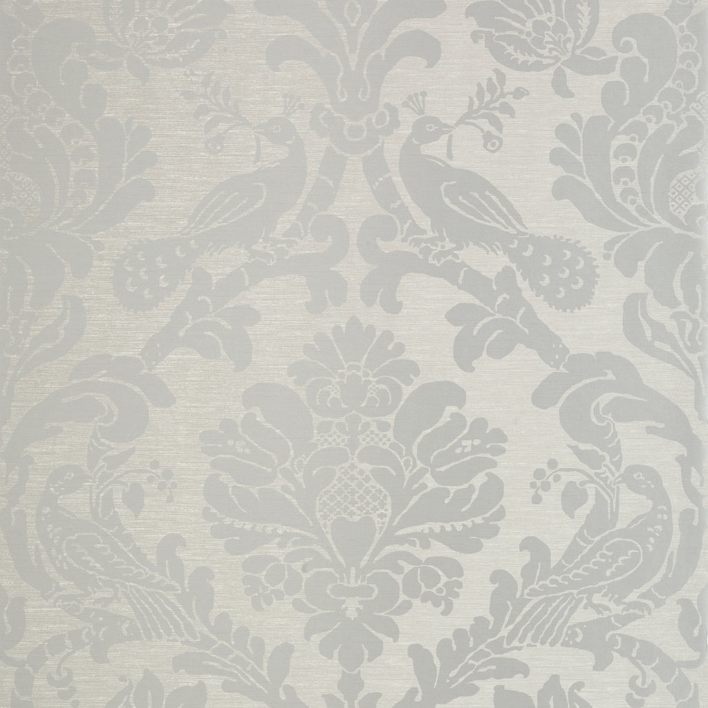 Passaro Damask Metallic Silver On Grey Wallpaper | Thibaut Wallpaper
