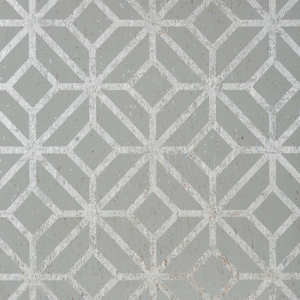 Mamora Trellis Cork Grey On Metallic Silver Wallpaper | Thibaut Wallpaper