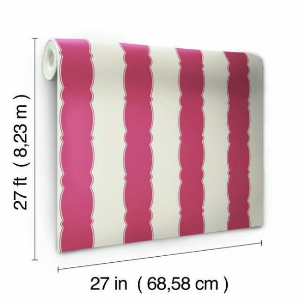 The elegant curves of a wooden spindle inspire the curvaceous silhouette of pattern Scallop Stripe. This Scalloped Stripe Wallpaper measures approximately 27 inches wide by 27 feet long, covering About 60.