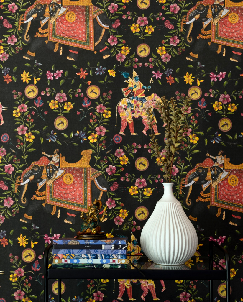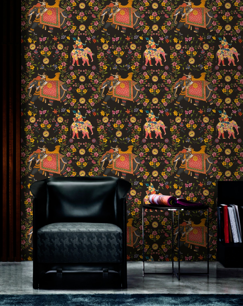 An amazing artwork on a black background, inspired by the traditional Indian fabric. All Mind The Gap wallpapers are made on new generation non-woven substrate. Printed with eco-friendly inks, Mind The Gap wallpaper are easy to install on any wall type. When hanging the wallpaper, apply the ready-mix adhesive paste on the wall and hang the strips one by one by butting the edges together. The adhesive allows for a while moving the wallpaper strips, so that the wallpaper pattern continues correctly from one strip to another. All our wallpapers are tested and certified for fire rating according to the international legislation. More information and official reports regarding the fire rating are available on demand.