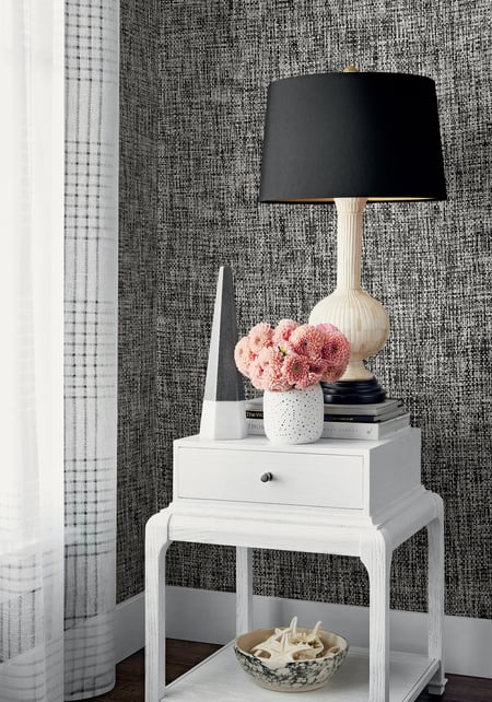 Arthur's Tweed Wallcovering - Black | Thibaut Design