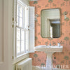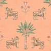 Lush crimson palms sweep across a soft peach backdrop in this bold yet sophisticated Tiger Palm design by Schumacher. A perfect balance of tropical flair and refined elegance. #luxurydesign #wallpaperstyle #homedecorinspo