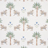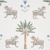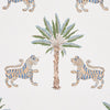 Tiger Palm Delft Wallpaper by Schumacher features lush palm leaves and subtle tiger stripes in a refined, elegant composition. Perfect for adding a touch of tropical sophistication to any interior. #luxurywallcoverings #tropicaldesign #elegantinteriors