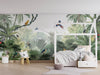 Canopy Jungle Mural by Sir Edward showcases lush tropical foliage in deep greens and blues, creating an immersive jungle atmosphere. Its intricate leaf details evoke a serene and exotic ambiance. #luxuryinteriors #wallmural #elegantwallcoverings