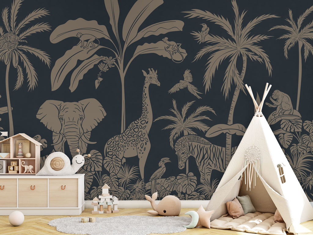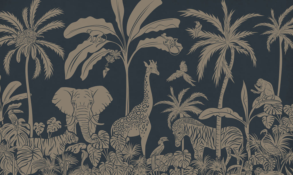 Each new design begins with a carefully considered concept—whether it’s a whimsical garden scene, a dramatic landscape, or a surreal menagerie. Once the theme and style are set, we assign the most fitting illustrator to hand-paint the design’s elements: from exotic animals captured in motion to delicate florals, vast skies, lush trees, and more. Every illustration is painted individually and then seamlessly layered into the full composition.