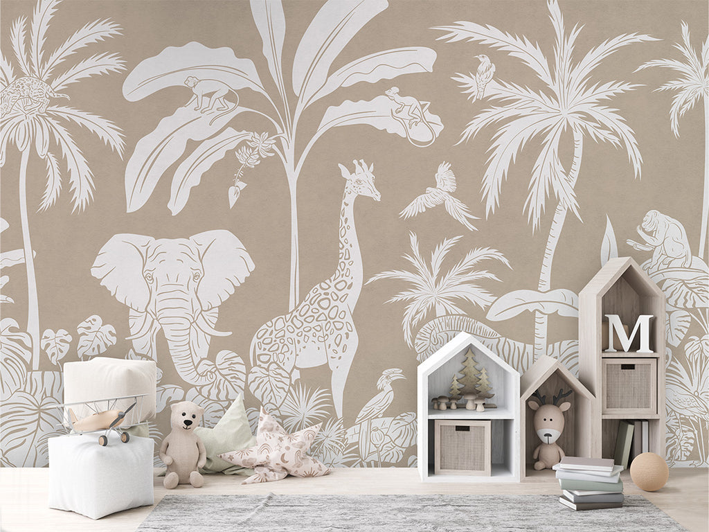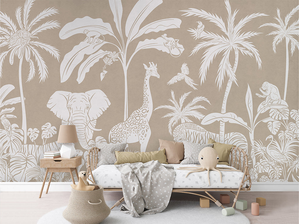 Lush foliage in rich brown tones creates a serene, nature-inspired statement with the Jungle Brown Mural | Sir Edward. 🌿 #luxuryinteriors #muraldesign #modernwallart