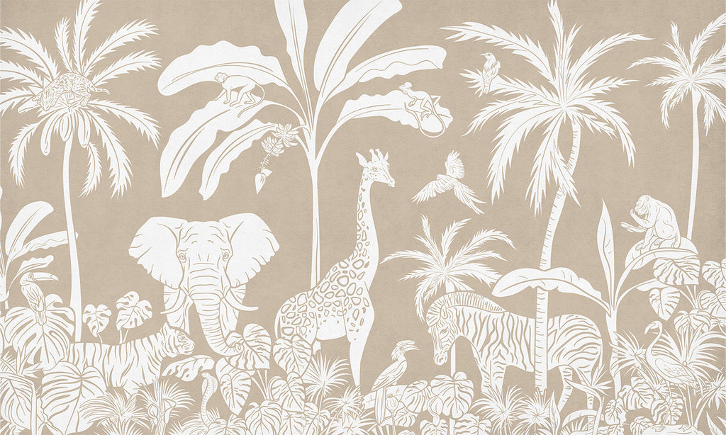 Each new design begins with a carefully considered concept—whether it’s a whimsical garden scene, a dramatic landscape, or a surreal menagerie. Once the theme and style are set, we assign the most fitting illustrator to hand-paint the design’s elements: from exotic animals captured in motion to delicate florals, vast skies, lush trees, and more. Every illustration is painted individually and then seamlessly layered into the full composition.