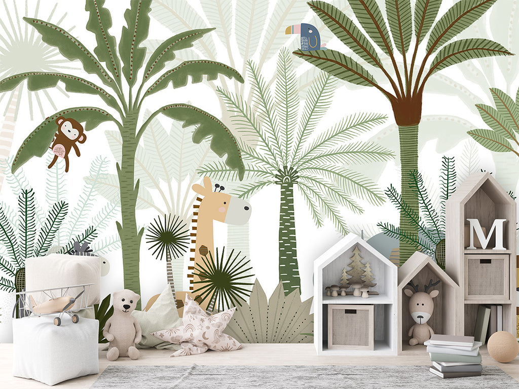 Each new design begins with a carefully considered concept—whether it’s a whimsical garden scene, a dramatic landscape, or a surreal menagerie. Once the theme and style are set, we assign the most fitting illustrator to hand-paint the design’s elements: from exotic animals captured in motion to delicate florals, vast skies, lush trees, and more. Every illustration is painted individually and then seamlessly layered into the full composition.