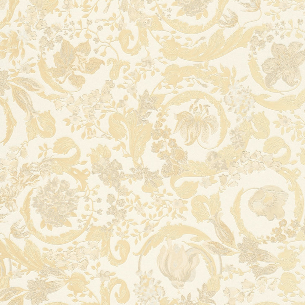 Opulent baroque motifs and gilded accents define the Virtus Wallpaper | Versace—timeless, bold, and unmistakably luxe. #luxurydesign #versacehome #statementwallcovering