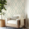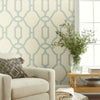 Wilomina Eggshell Blue On Cream Woven Trellis Blue White Wallpaper | Jeffrey Stevens