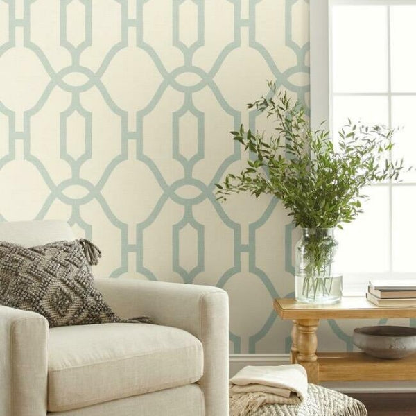 A striking and familiar pattern with overscale geometrics and broad bands of color, Magnolia Home Woven Trellis Wallpaper connects any indoor space with a sense of outdoor luxury. This Woven Trellis Wallpaper measures approximately 20.