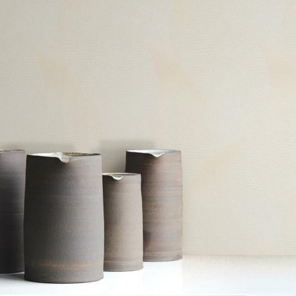 Rising like a vapor, wavering like a plume of smoke, Genie Wallpaper posesses a magical quality through the quavering vertical lines, tiny ovoid shapes and mesmerizing sheen. This Genie Wallpaper measures approximately 27.