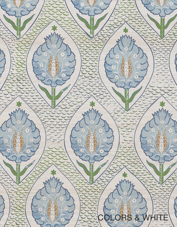 Rediscover the aesthetics of the Ottoman era with the Hatayi Ottoman 8 Colors & White Wallpaper from Paul Montgomery. #ElegantInteriors #PaulMontgomeryDesign #WallArtTransformation.