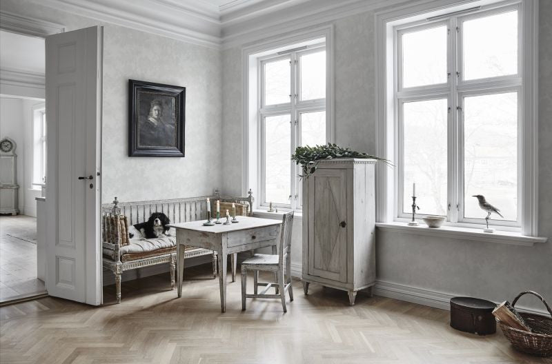 The new expression of our beloved wallpaper Raphaël takes us to a misty morning’s quiet stroll through the park. Inspired by an antique woven tapestry showing a beautifully lush landscape.