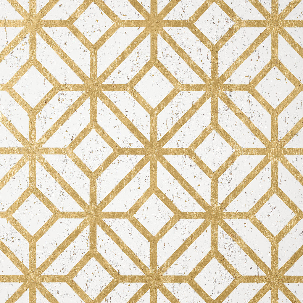 White cork in an intricate trellis design shimmers over a warm metallic gold background—elevated elegance by Thibaut. #luxurywalls #moderndesign #wallartdecor
