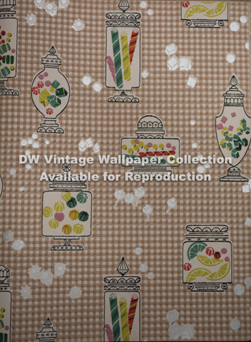 This vintage-inspired wallcovering features a playful candy jar motif set against a classic gingham background. Its nostalgic charm and durable paper construction make it a delightful choice for adding a touch of retro flair to commercial spaces.