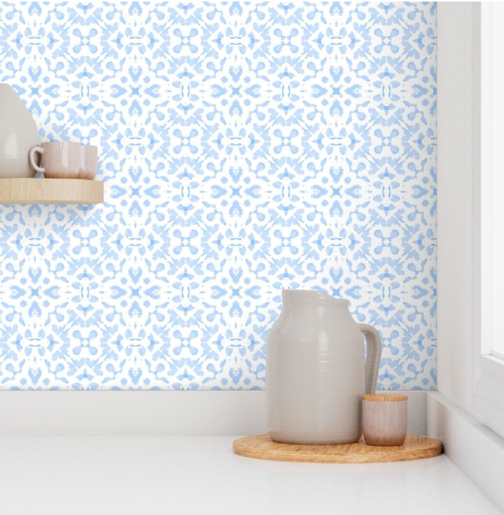 Walter Water Color Paper Blue Traditional Wallpaper