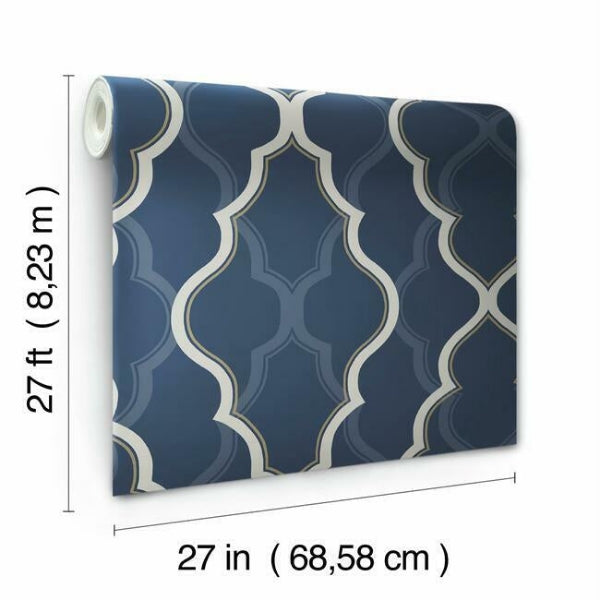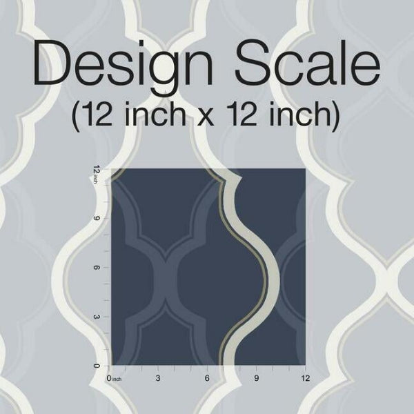 Large scale and bold with arabesque designs and metallic tracery in the foreground; soft shadows repeat the design in the background. This is Double Diamond, a strikingcontemporary wallpaper.