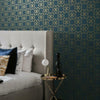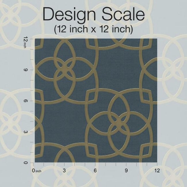 A four-leaf roulette of intersecting metallic flower petals interlock in a play of perfect geometry in pattern Serendipity. This Serendipity Wallpaper measures approximately 21 inches wide by 33 feet long, covering About 57.