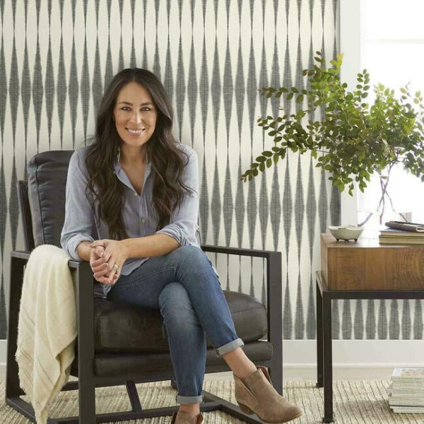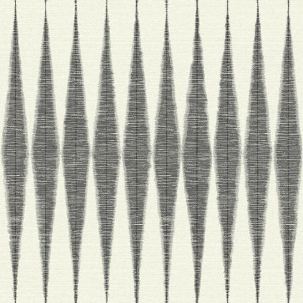 This sophisticated commercial wallcovering showcases a striking geometric pattern of elongated diamond shapes in rich charcoal tones against a warm cream background, creating visual depth through its handloom-inspired texture. The rhythmic vertical arrangement of the abstract motifs adds contemporary elegance while maintaining professional appeal. Class A fire rated for low traffic commercial applications, this design is ideal for executive offices, boutique hotels, upscale healthcare facilities, and corporate reception areas. The neutral color palette ensures versatility while the bold geometric pattern makes a refined design statement.