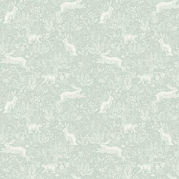 Rifle Paper Co. ’s Fable print is inspired by classic tales, and features illustrated wood-block inspired woodland creatures among a forest of leaves and flowers.