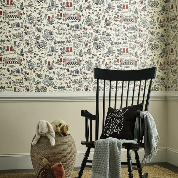 Walwin Pastel Wonderland Novelty Peel And Stick Multicolor Red Wallpaper | Jeffrey Stevens
