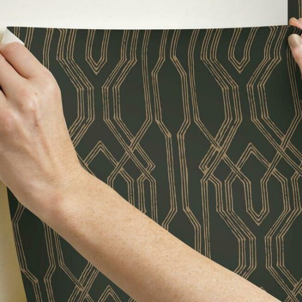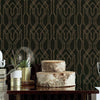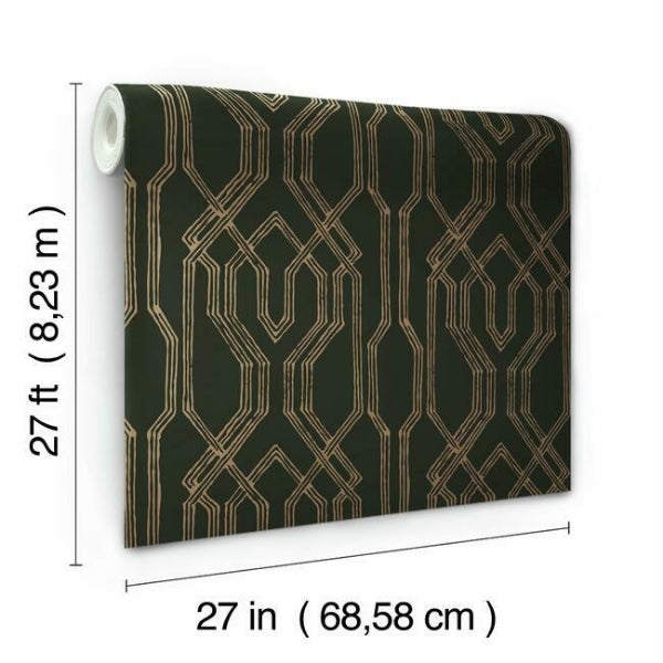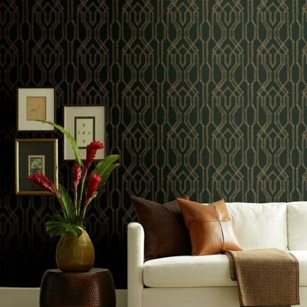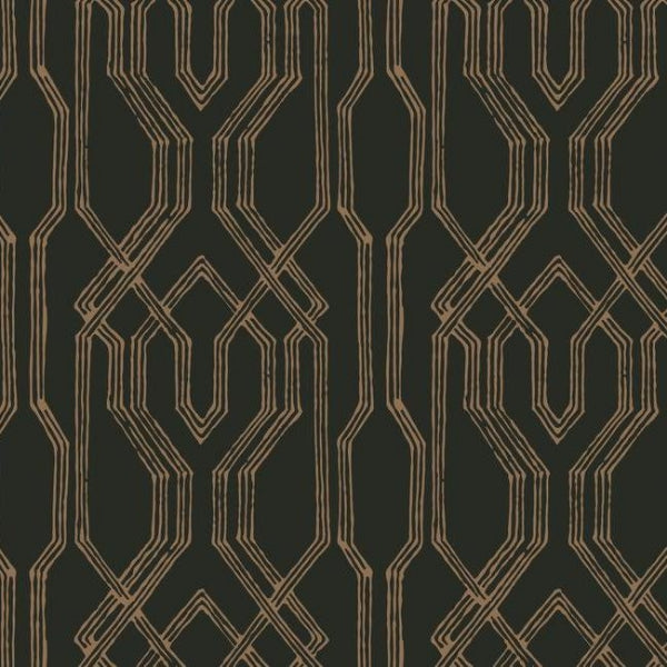 Oletta Black, Gold Oriental Lattice Trellis Wallpaper | Jeffrey Stevens