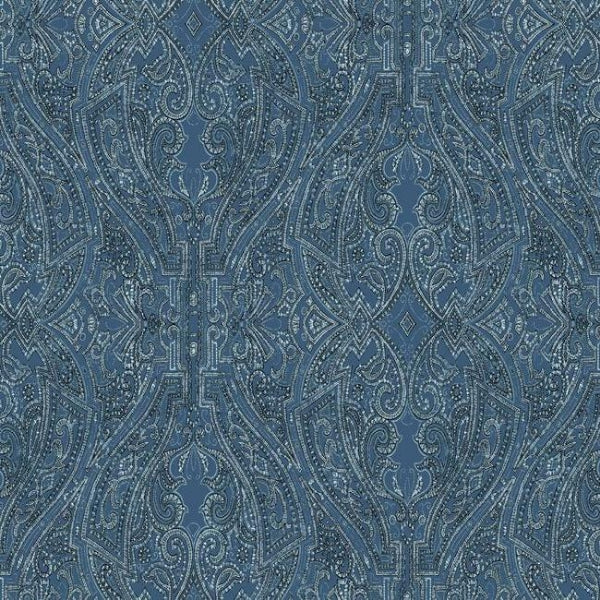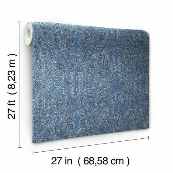 Elegant paisley pattern Ascot Damask is inspired by luxury menswear silks and shirting. This Ascot Damask Wallpaper measures approximately 27 inches wide by 27 feet long, covering About 60.